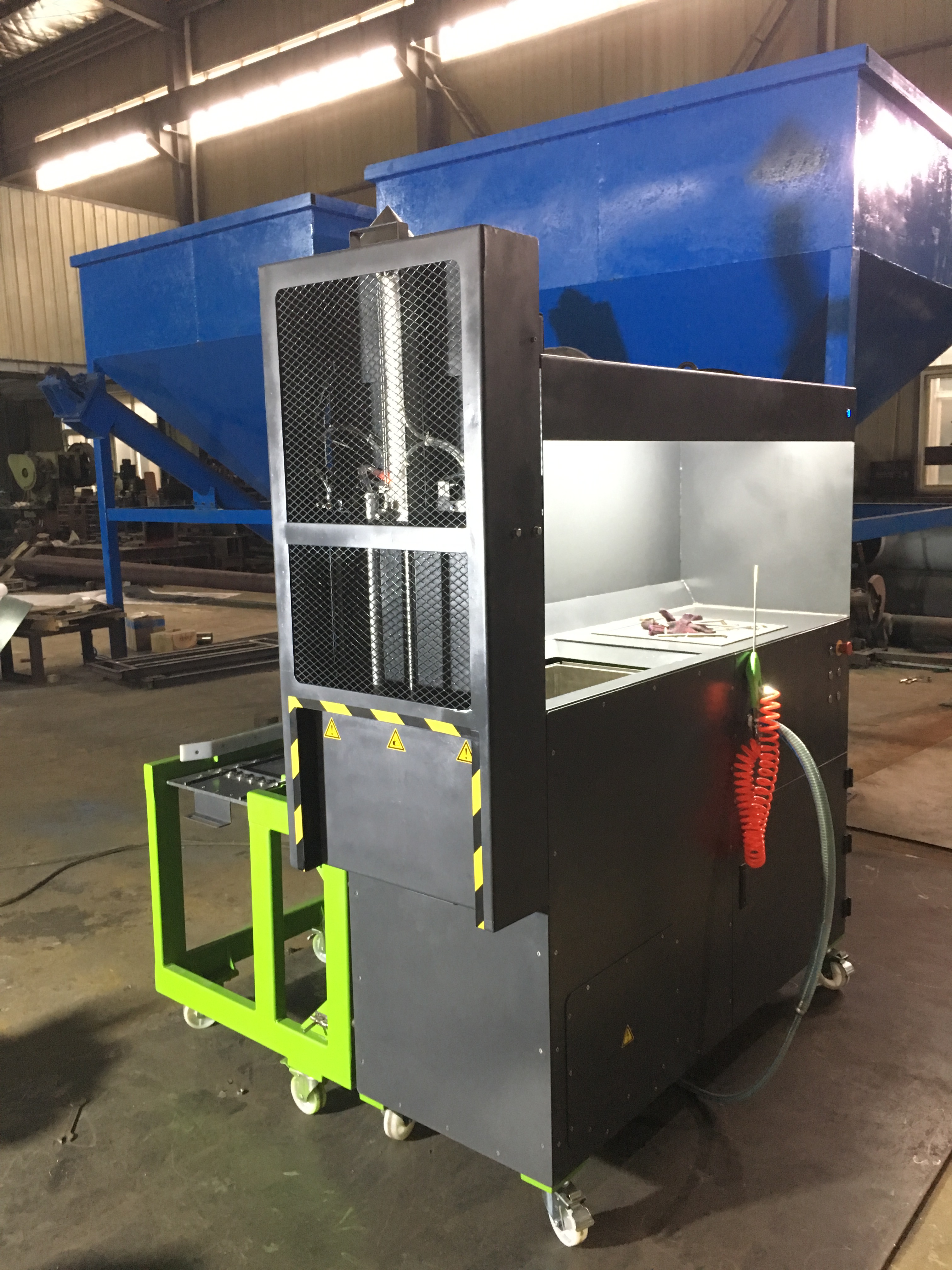 Downdraft Booth is a tailor made machine that is capable of vacuum cleaning a specified size product. The suction power and overall machine size can be made at client's request.